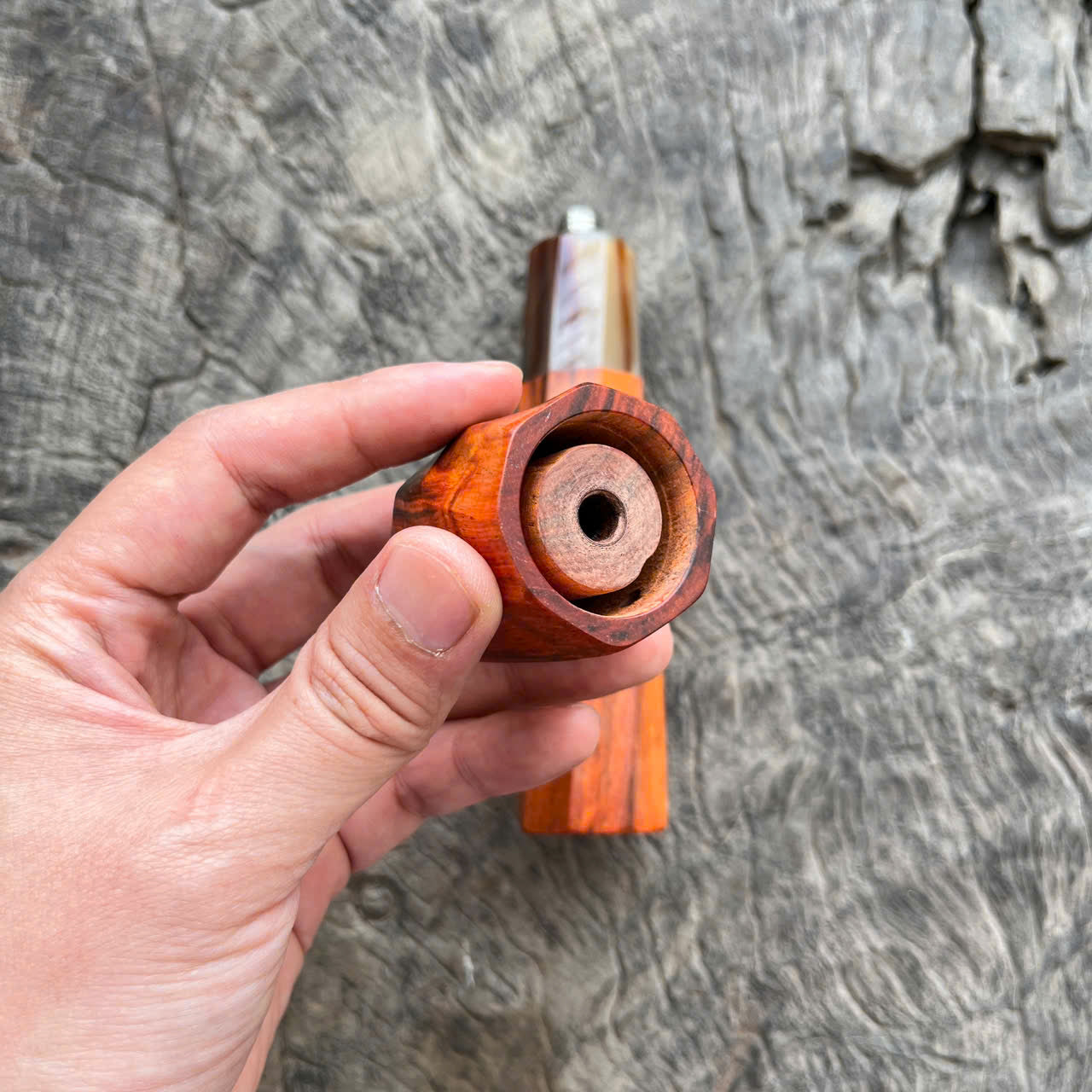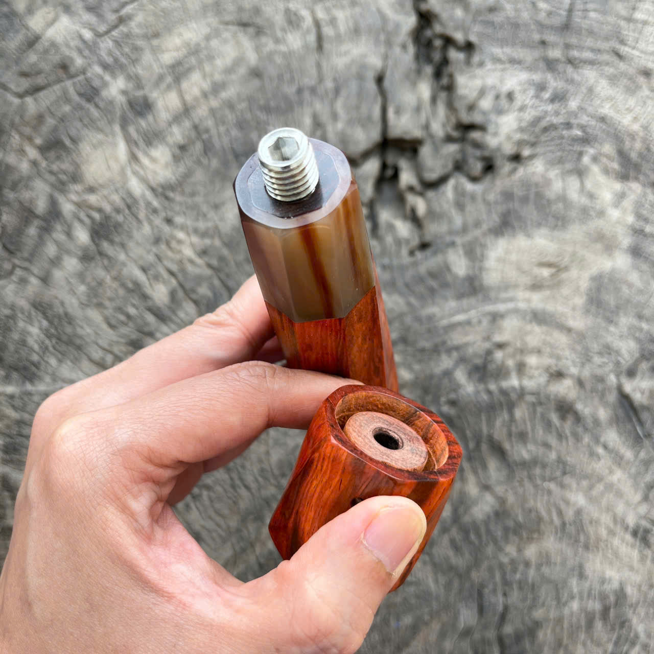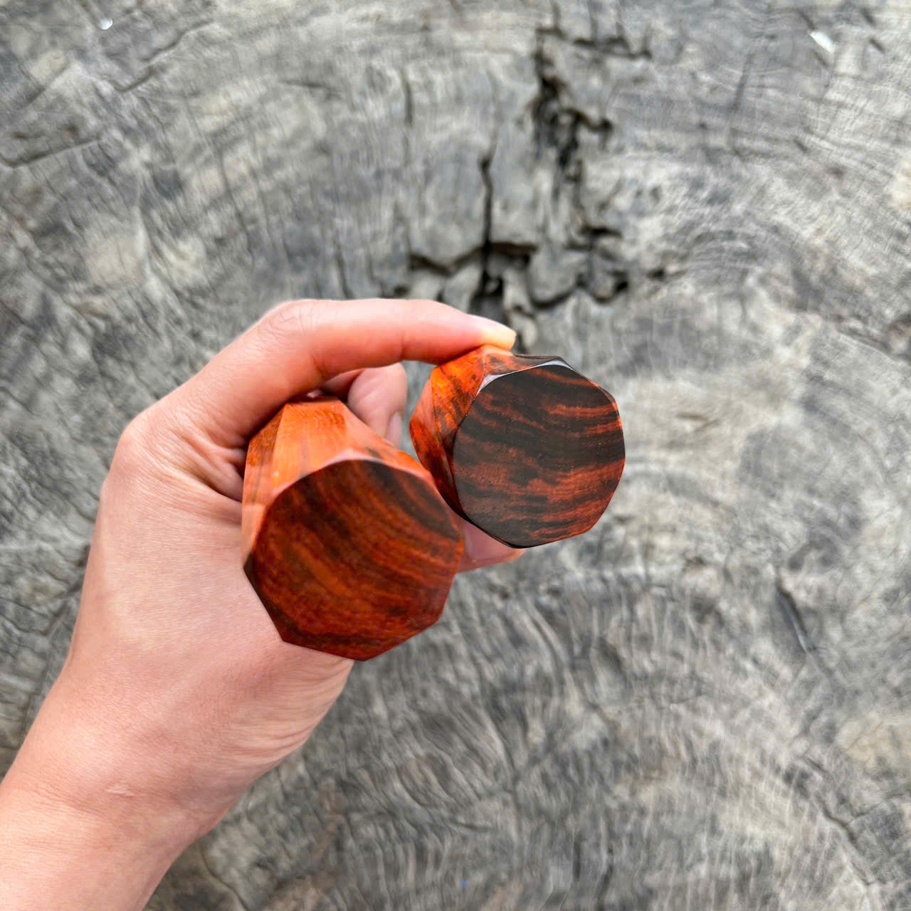 Set of Twisted Portafilter handle (M12 thread) and Twisted Steam knob made from Siam Rosewood