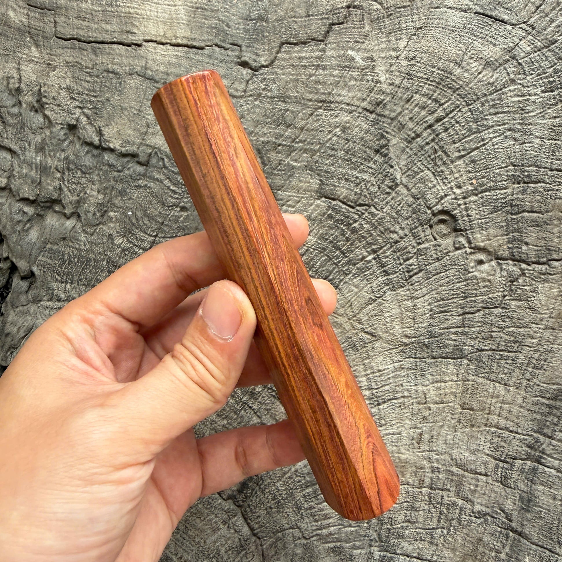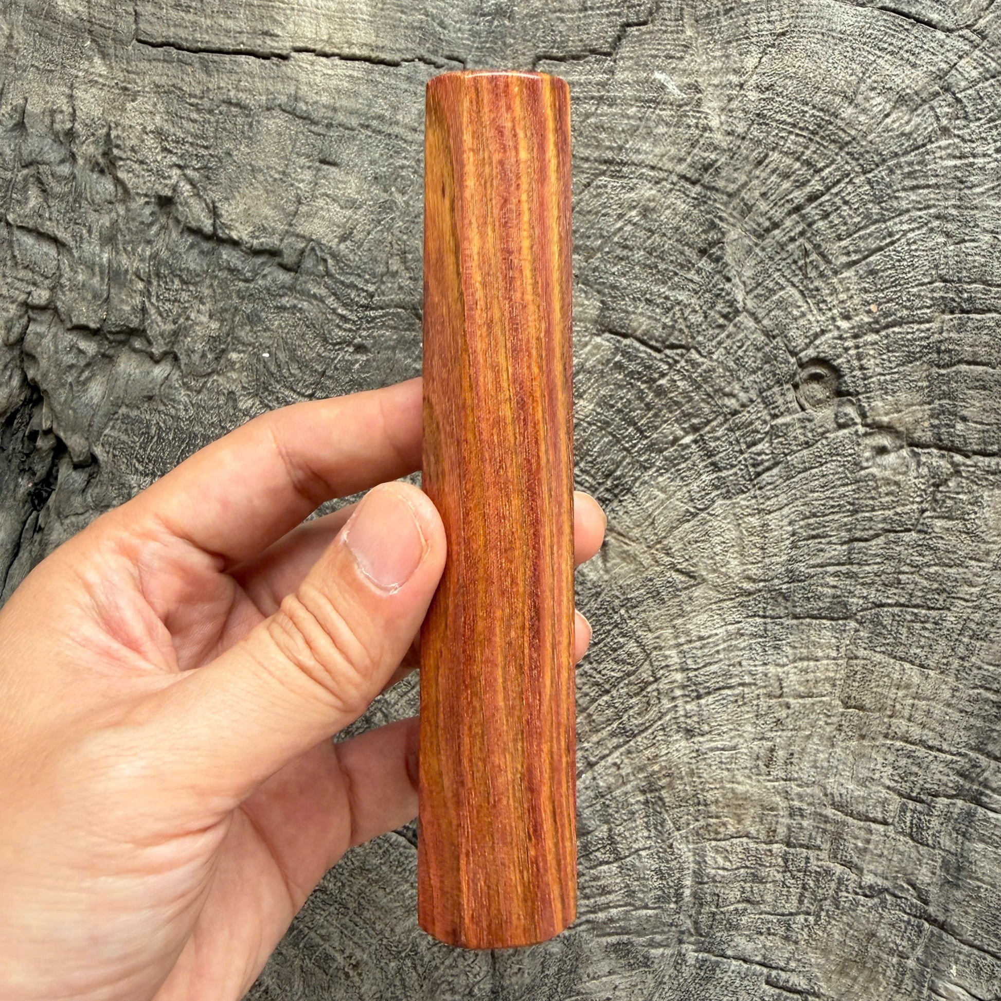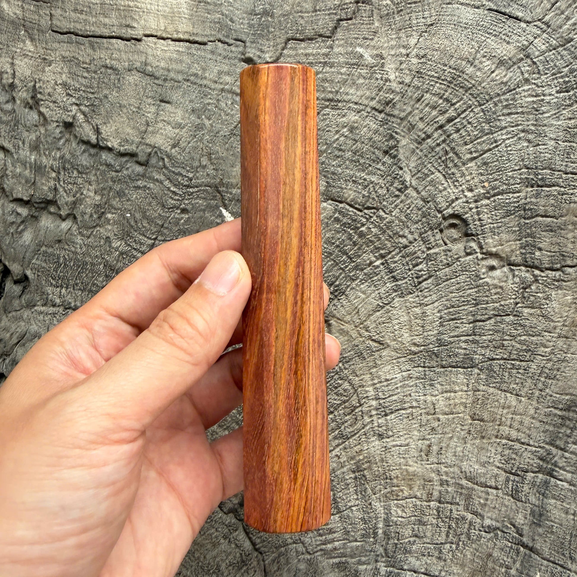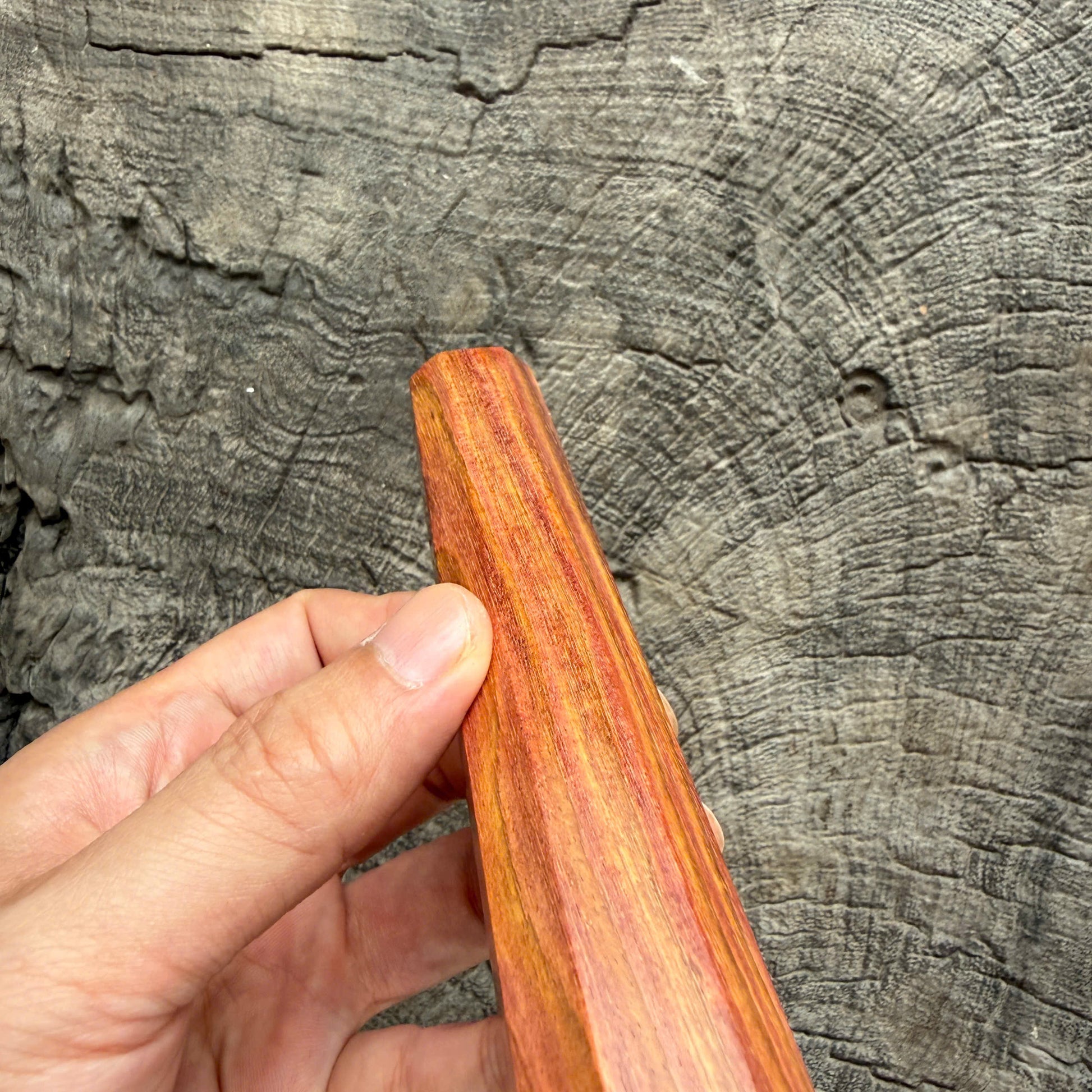 - Huanghuali meaning "yellow flowering pear," is one of the most prized hardwoods in traditional Chinese and Vietnam craftsmanship. Known for its rich, warm tones, intricate grain patterns, and natural fragrance, Huanghuali was historically used in imperial furniture. This rare wood is dense, durable, and polishes to a stunning natural luster, making it an exceptional material for high-end knife handles. Its rarity and beauty make each piece not only functional but also a collector’s item.