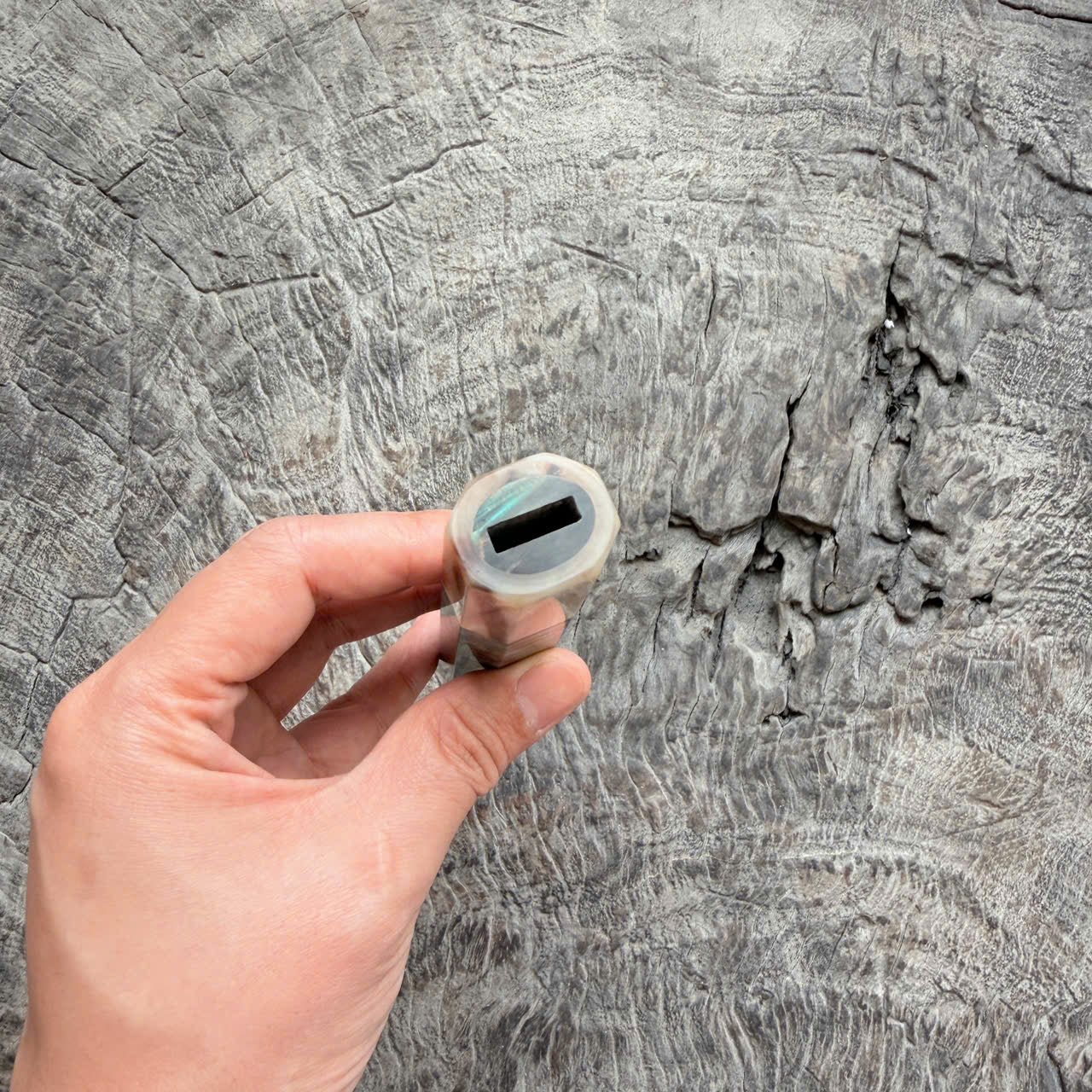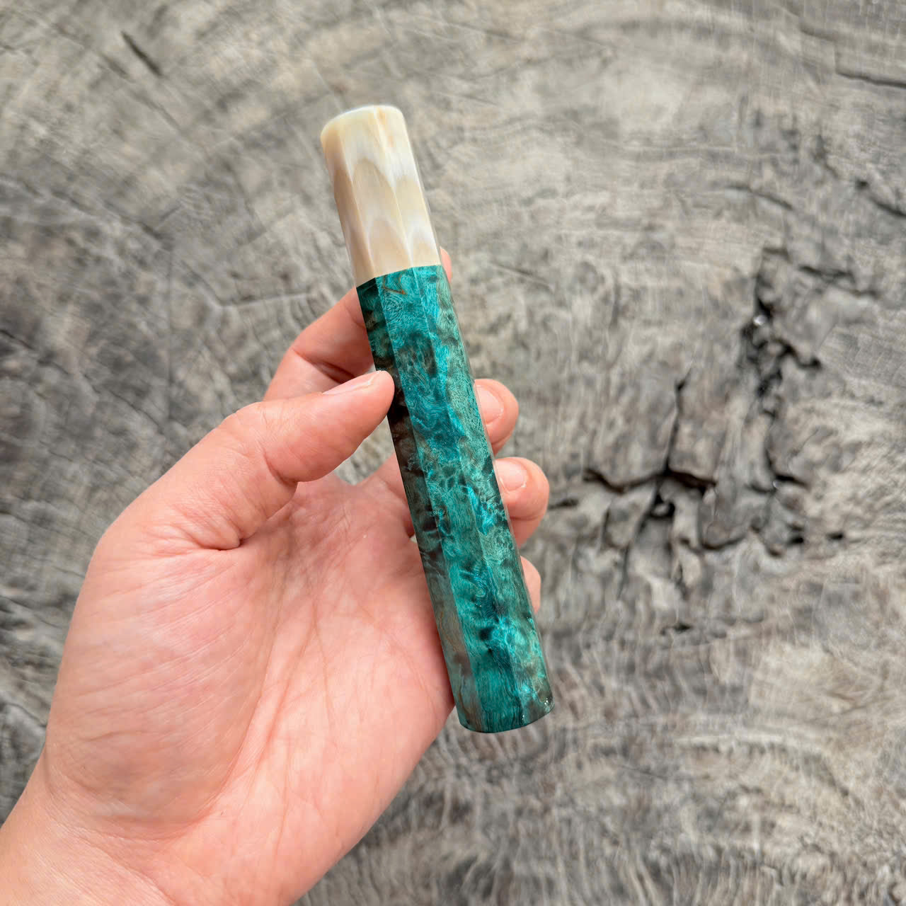 I - Blue Stabilzied Burl wood Wa handle, Cream horn Ferrule, 140mm handle