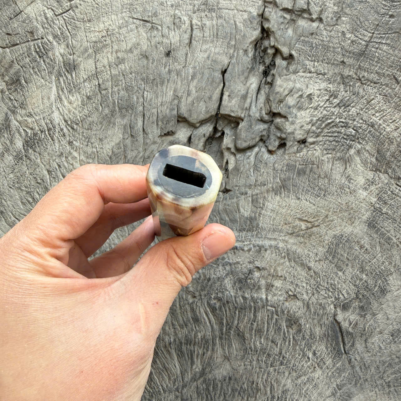 I - 3 Black White Ebony Wa handle, Ivory Marble Horn Ferrule & End cap - 140 mm