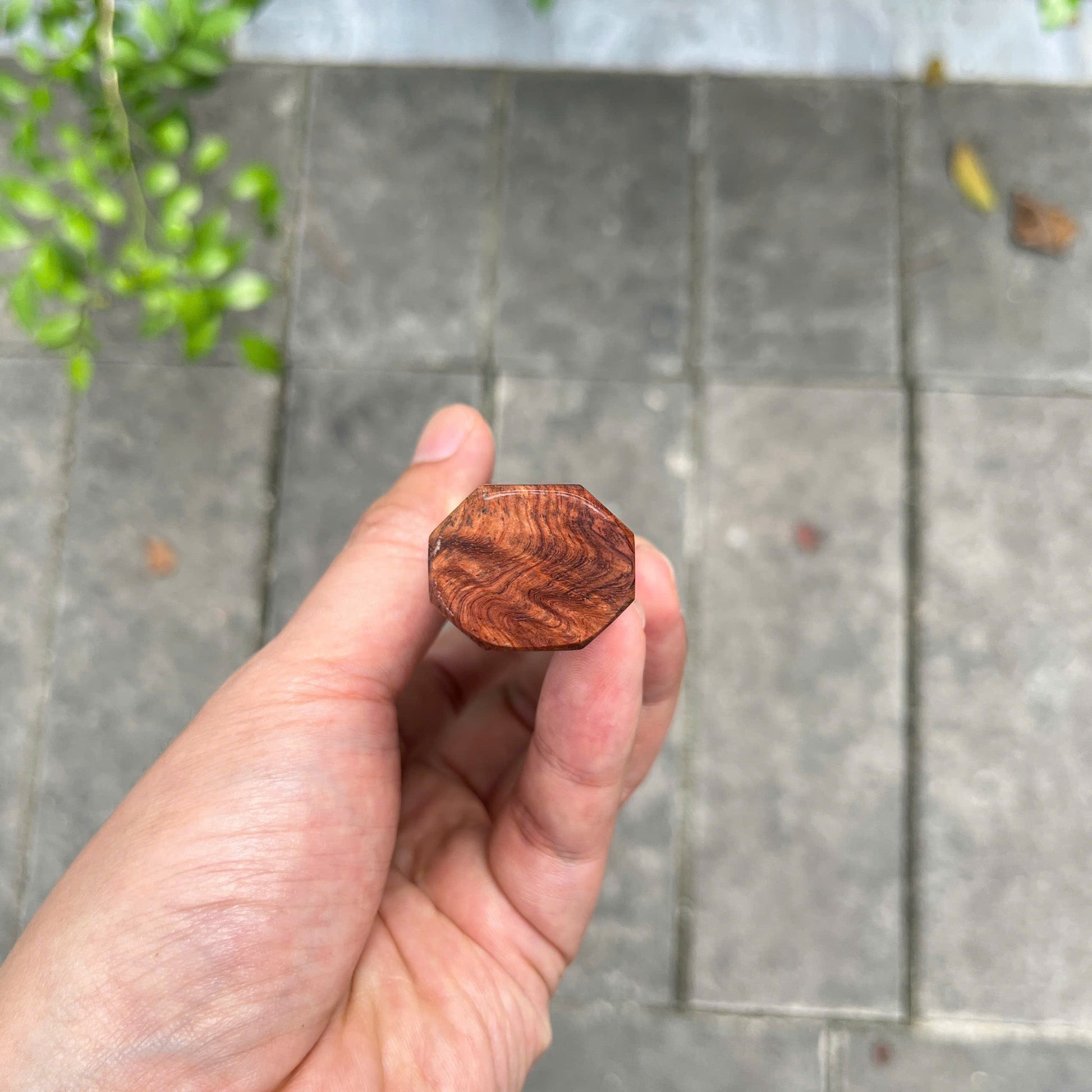 I- 3 Cool Red Amboyna Burl Wa handle, Black horn ferrule, Brass spacer- 135mm