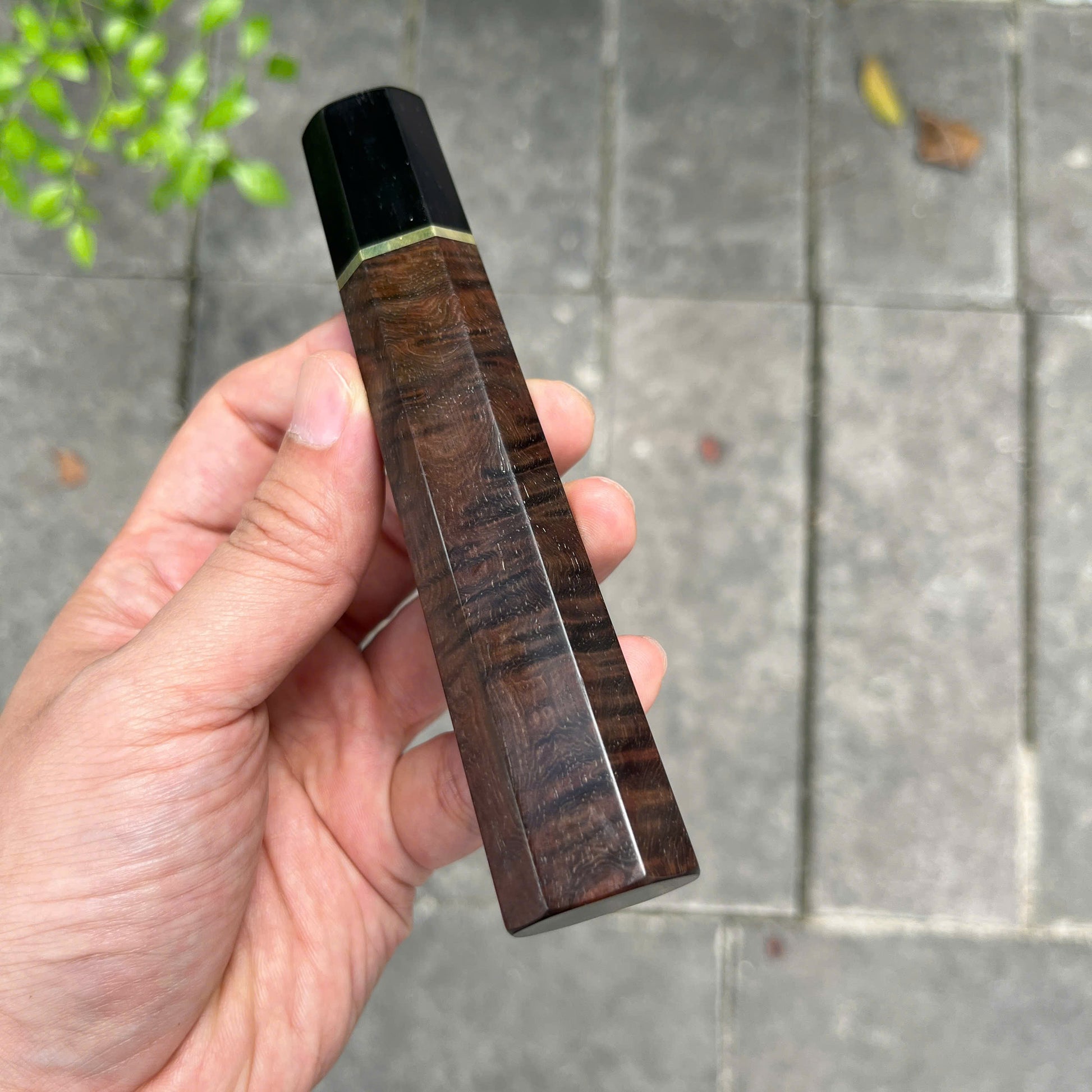 I- 8 Dark Curly Siamese Rosewood Wa handle, Black horn ferrule, Brass spacer- 135mm