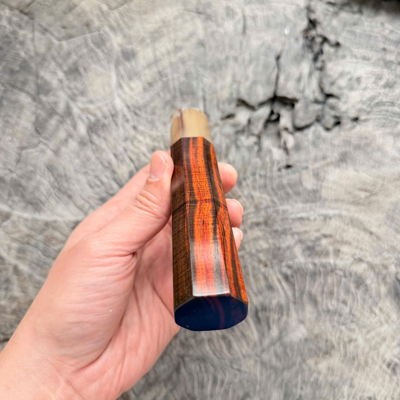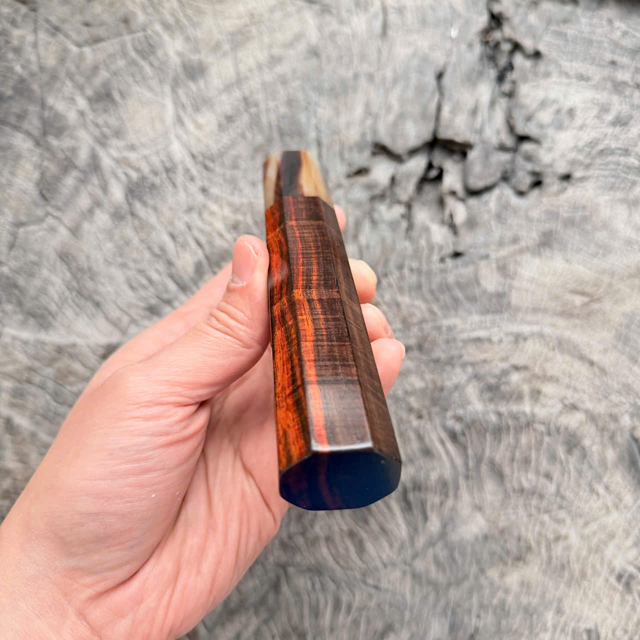 I - Cool Curly Red Black Siamese Rosewood Wa handle, Marble horn ferrule, 145 mm handle