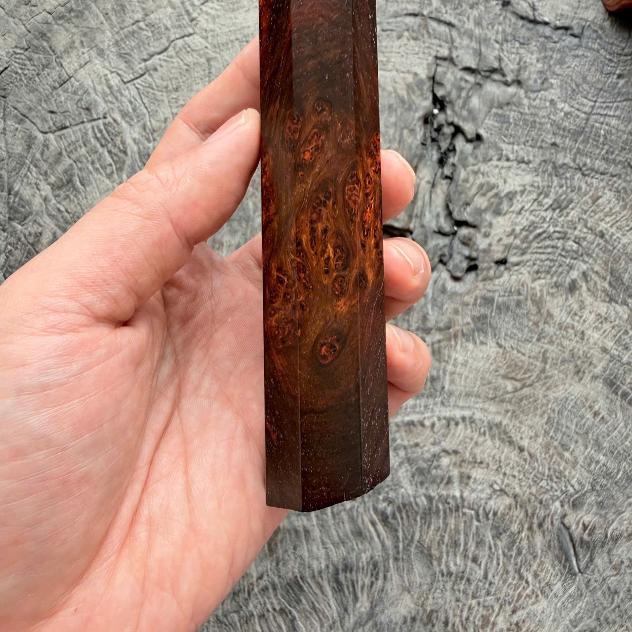I - SUPER Siamese Rosewood Burl Wa handle, Live Edge, Cool black white horn Ferrule, 145mm handle